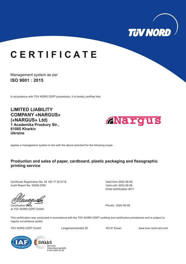 Nargus flexographic printing factory is an up-to-date high-tech manufacturer of flexible packaging for food, pharmaceutical, chemical and other industries, one of the leading manufacturers at the Ukrainian packaging market.